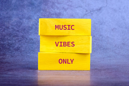 Colorful yellow blocks stack together with a vibrant message promoting a joyous atmosphere filled with vibes. Perfect for any room or event celebrating sound.