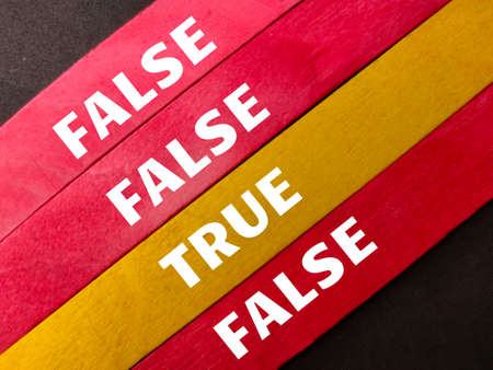 Top view colored ice cream stick with text FALSE AND TRUE on black background.