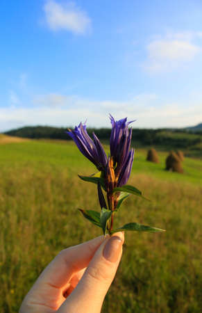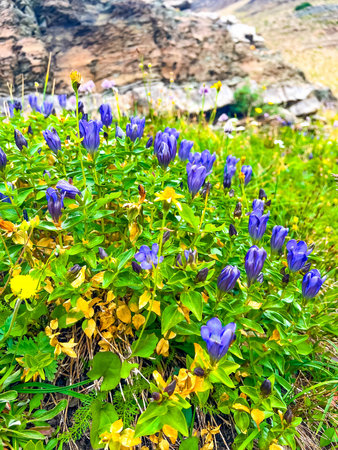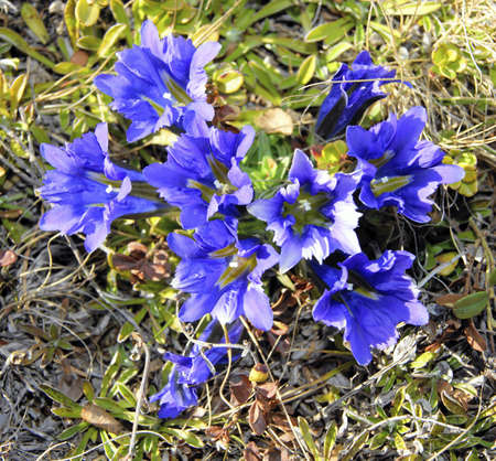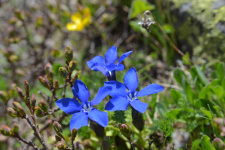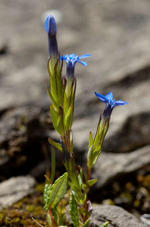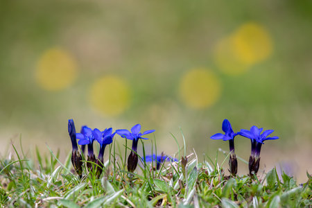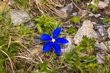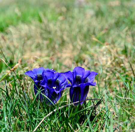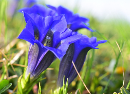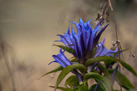 Beautiful wild gentain flower on an alpine meadow in Switzerland. Closeup