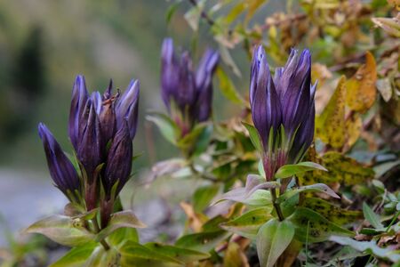Japanese gentian (Gentiana scabra) flowers. Gentianaceae native to Japan. Blue-purple flowers bloom in autumn. The roots are used as a stomach medicine.