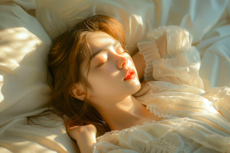 Beautiful girl sleeps in the bedroom.