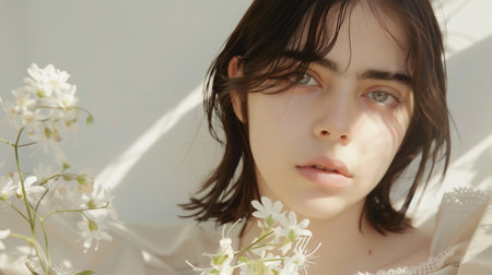 Pure simple beauty girl with flowers