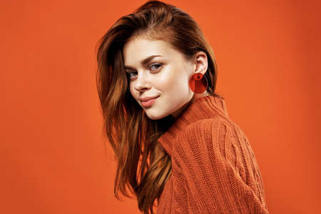 woman in red sweater clean skin hairstyle fashion studio