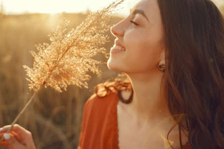 Stylish woman spending time in a summer field