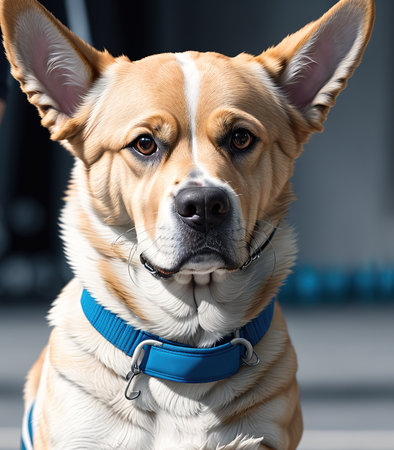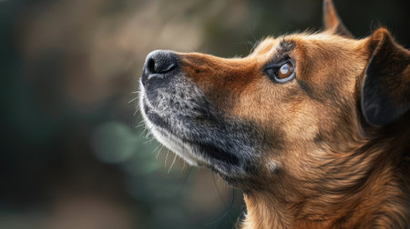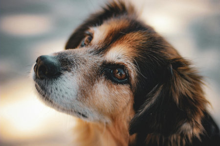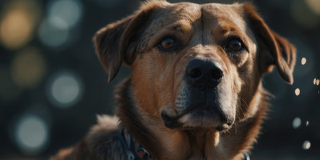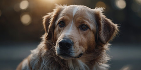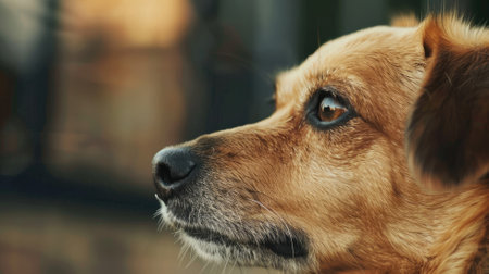 AI Generated. A close-up view of a dog's face with a blurry background Can be used to capture the emotions and expressions of a beloved pet