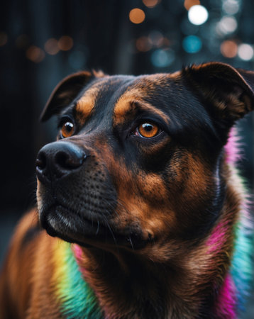 Adorable dog gazing into the distance, capturing the softness and beauty of the moment with a bokeh background. Perfect for pet lovers. Generated AI.