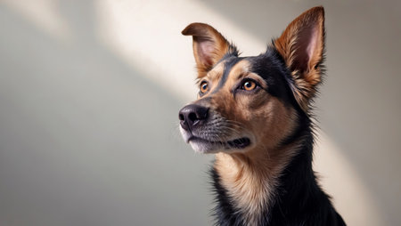 AI Generated. Attentive dog with black and tan fur looking curiously