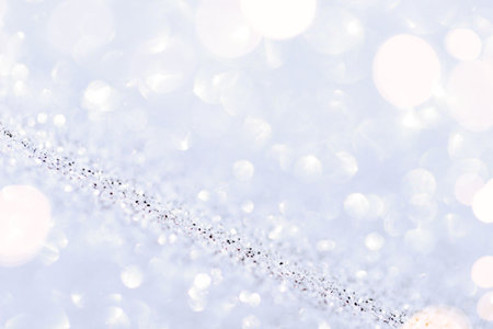 Beautiful festive background image with sparkles and bokeh in pastel pearl and silver colors. Selective focus, shallow depth of field.