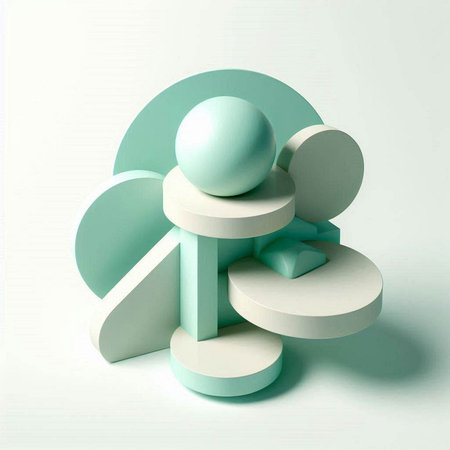 Vibrant 3d abstract geometric shapes on soft blue background a surreal artistic composition