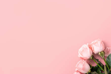 Valentine's Day design concept background with pink rose flower on pink table background background