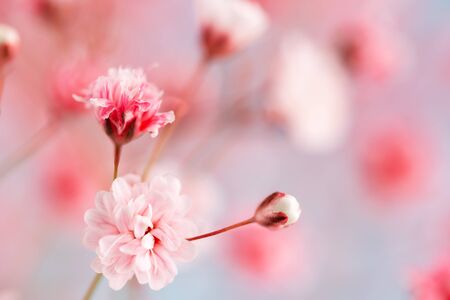 Pink gypsophila or baby's-breath flowers close up modern minimalistic design