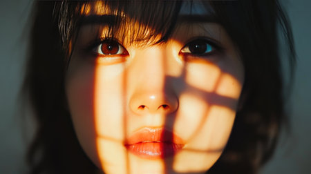 Japanese Woman's Face Illuminated by Soft Sunshine