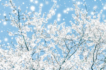 Magical, branding and festive concept - Christmas, New Years blue floral nature background, holiday card design, flower tree and snow glitter as winter season sale backdrop for luxury beauty brand