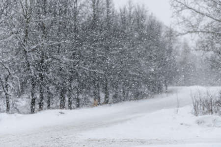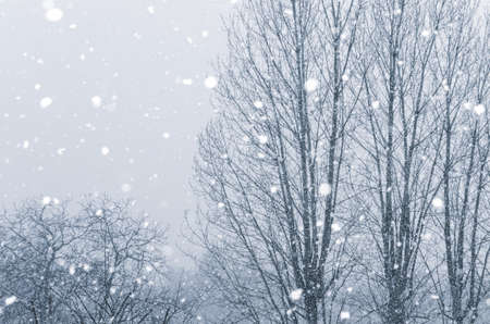 Snowfall. Beautiful winter background seasonal nature and the weather in winter. Winter landscape with falling snow.