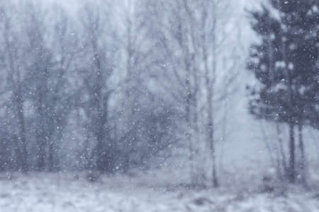 Snowfall in winter - winter day. Falling snow on a blurry nature background