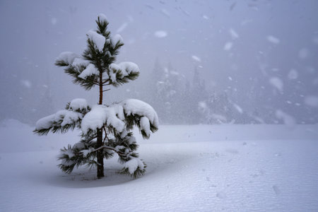 Majestic Winter Wonderland Featuring Snow-Covered Conifer Trees in a Serene Snowfall Landscape