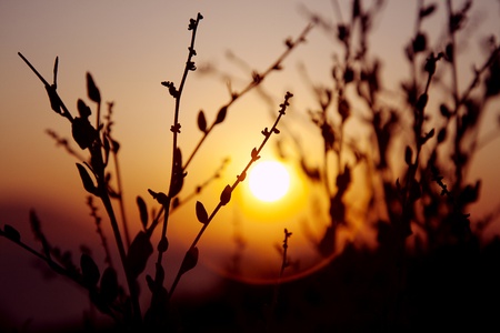 sun setting behind dry plant silhuettes