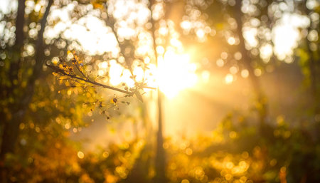 A beautiful image of sunlit branches with a soft bokeh effect, creating a peaceful and dreamy atmosphere.