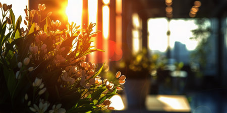 A vibrant close-up of flowers illuminated by sunlight in a picturesque field,.