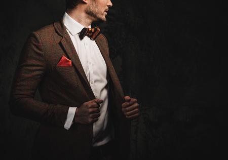 Sharp dressed fashionist wearing jacket and bow tie