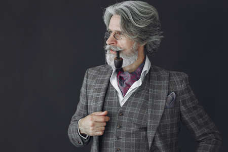 Elegant senior man with a smoking pipe
