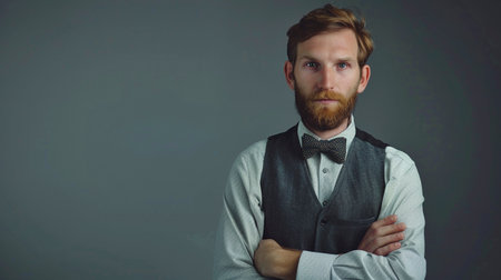 Portrait of a red-bearded man in a shirt and bow tie