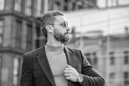 portrait of caucasian man style outdoor. caucasian man style in the street.