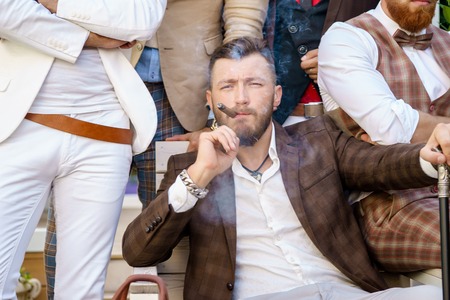 Portrait of elegant stylish successful man with cigar. The model looking at camera
