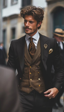 Classic man's old money style: elegant, timeless attire with premium fabrics
