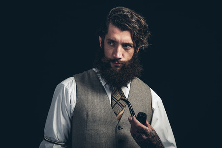 Portrait of a serious bearded man. thinking concept