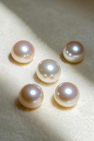 Real pearls Selected, beautiful color, laying on the ground, with reflection