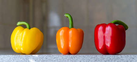 Fresh bell peppers of different colors, healthy vegetable vitamins