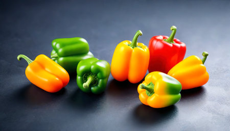 Colorful bell peppers background fresh green, red, and yellow vegetables backdrop