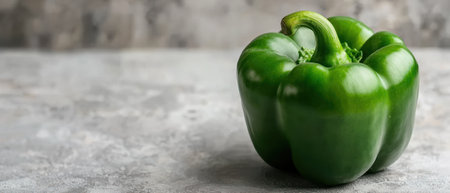A close up of fresh green bell pepper on smooth light background, showcasing its vibrant color and texture for culinary use