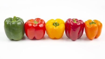 colored bell peppers on a white background. vitamin food