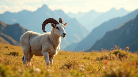 Blossoming Beauty: Ram on a Vibrant Flower Field [AR 3:2]