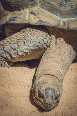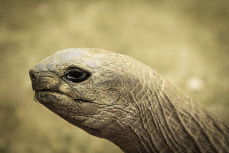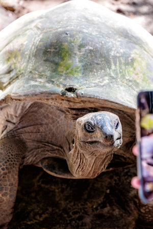 Close up of a giant turtle in Praslin island, Seychelles