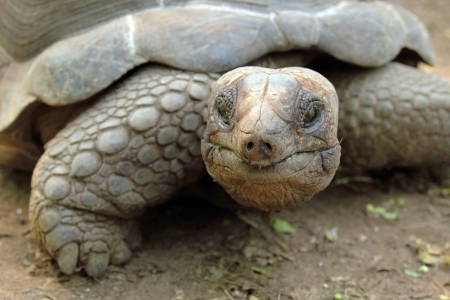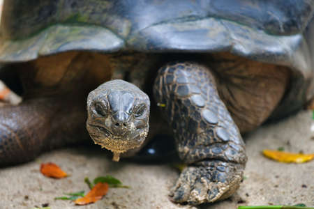 A giant Seychelles turtle in Mauritius close-up