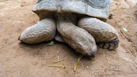 land-based Seychelles turtles in the wild close-up