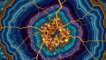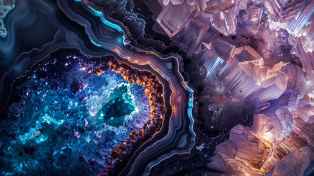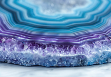 Explore the intricate beauty of a colorful geode with stunning textures and vibrant layers. Perfect for nature lovers and design enthusiasts alike.