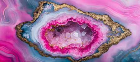 Pink, Blue, and Gold Marble Texture with Red and White Onyx Geode, Abstract Background
