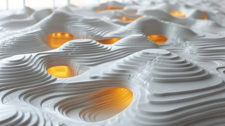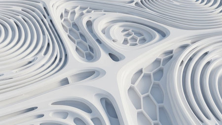 Layered showing intricate white organic cellular structure with layered hexagonal patterns and flowing curves...