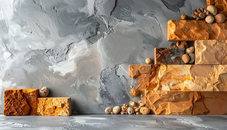 Explore a visually engaging collection of various materials and textures arranged thoughtfully, perfect for use in creative projects and interior design concepts.