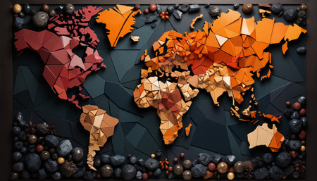 This artistic arrangement of colorful stones mimics a world map, showcasing natural beauty. Ideal for environmental themes and designs.