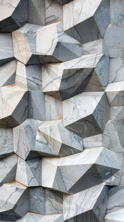 Angular shapes in shades of grey and black come together to create a dark and edgy abstract mesh
