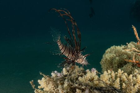 Red lionfish or Pterois volitans in wild nature.