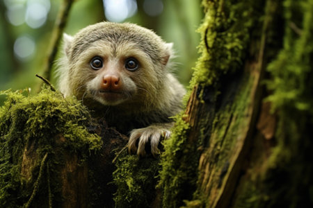 An endearing, high-resolution photograph portrays a pygmy marmoset during a tiny adventure in the Amazon canopy, reflecting its miniature size and arboreal lifestyle.