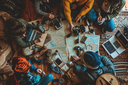 Inspiring global adventure planning with a vintage camera, compass, and illuminated map markers, photo concept