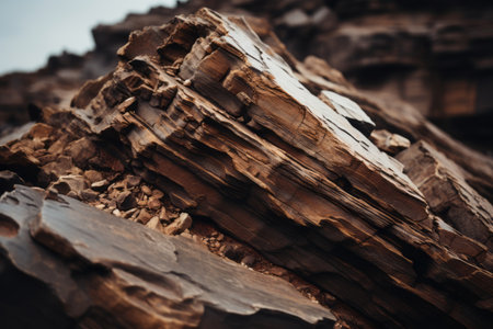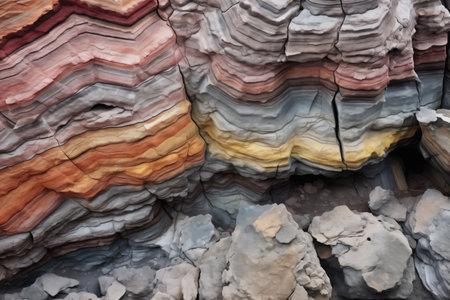close shot of layered sedimentary rocks, created with generative ai