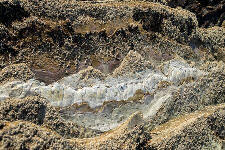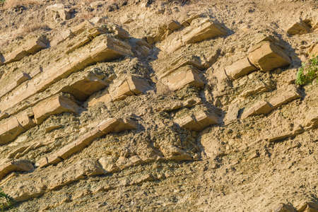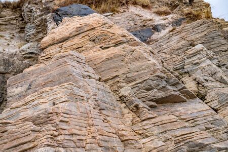 A close up of earth layers on a mountain. Limfjord, Denmark.